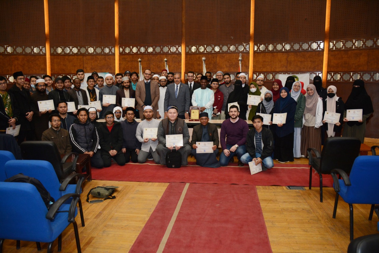 كرم الدكتور محمد المحرصاوي، رئيس جامعة الأزهر، نائب رئيس مجلس إدارة المنظمة العالمية لخريجي الأزهر، 200 طالب وطالبة من المشاركين في الدورة التدريبية لمشروع سفراء الأزهر، التابع للمنظمة العالمية لخريجي الأزهر، والتي تضمنت "شرح كتاب الملوكي في التصريف؛ لابن يعيش"؛ لفضيلة الشيخ سيدي فوزي كوناتي، من علماء الأزهر الشريف.