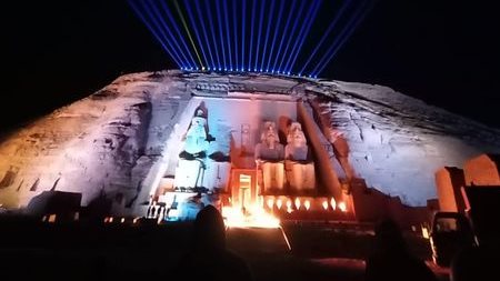 أما عن قصة الصوت والضوء بمعبد رمسيس الثانى بأبو سمبل، حيث يستمتع كل من يشاهد ويستمع لهذا العرض بتسليط الأضواء المبهرة على معبدى نفرتارى ورمسيس الثانى، والسماء تكون مليئة بالنجوم التى ينعكس بريقها على صفحة مياه بحيرة ناصر الزرقاء وسط نسمات الهواء اللطيفة، مع سرد مشوق بتقنيات صوت وصورة وإضاءة حديثة لفترة حكم رمسيس الثاني وحبه لنفرتارى وحروبه الإمبراطورية وصولاً لأول معاهدة سلام فى التاريخ مع الحيثيين فى دقائق تنقلك فى ثوانٍ لتاريخ مشرف لبلد عظيم، وتتم ملاحظة انبهار السائحين والزائرين المصريين في عيونهم لنظراتهم ومشاهدتهم لهذا العرض وأياديهم تكون على كاميراتهم وموبايلاتهم لتسجيل وتصوير ما يشاهدوه من إبداعات مصرية.