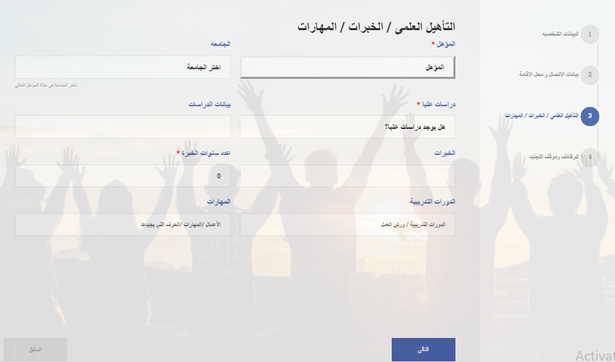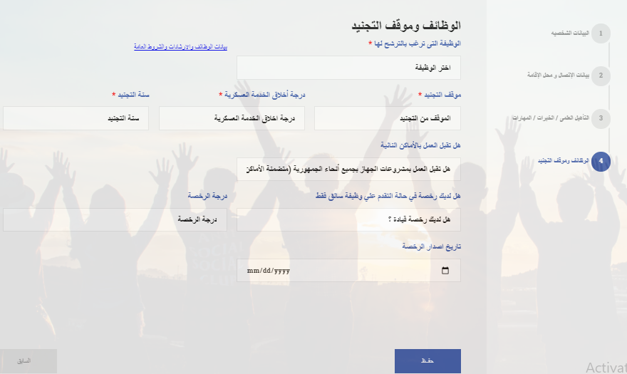وفي الصور التالية نستعرض خطوة بخطوة البيانات المطلوبة للحصول على وظيفة في جهاز مشروعات الخدمة الوطنية:
