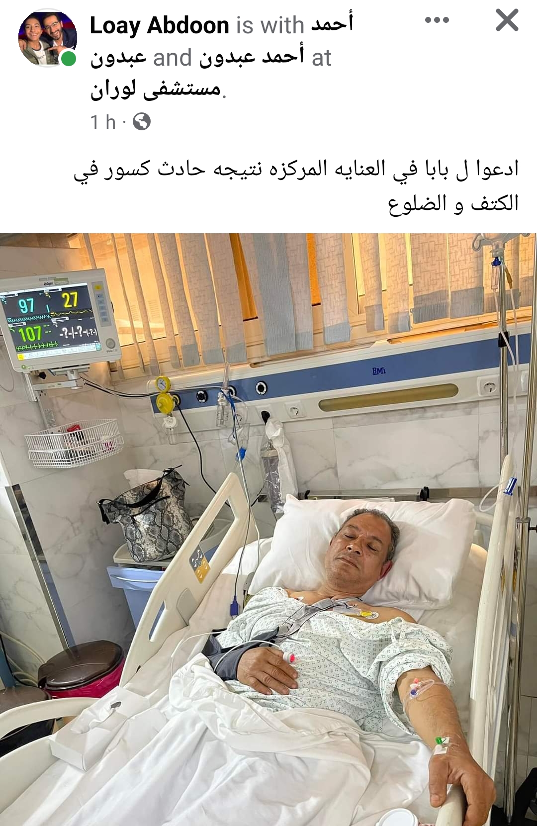وكتب نجم ذا فويس كيدز لؤي عبدون، في منشوره عبر فيسبوك: «ادعوا ل بابا في العنايه المركزه نتيجه حادث كسور في الكتف و الضلوع».