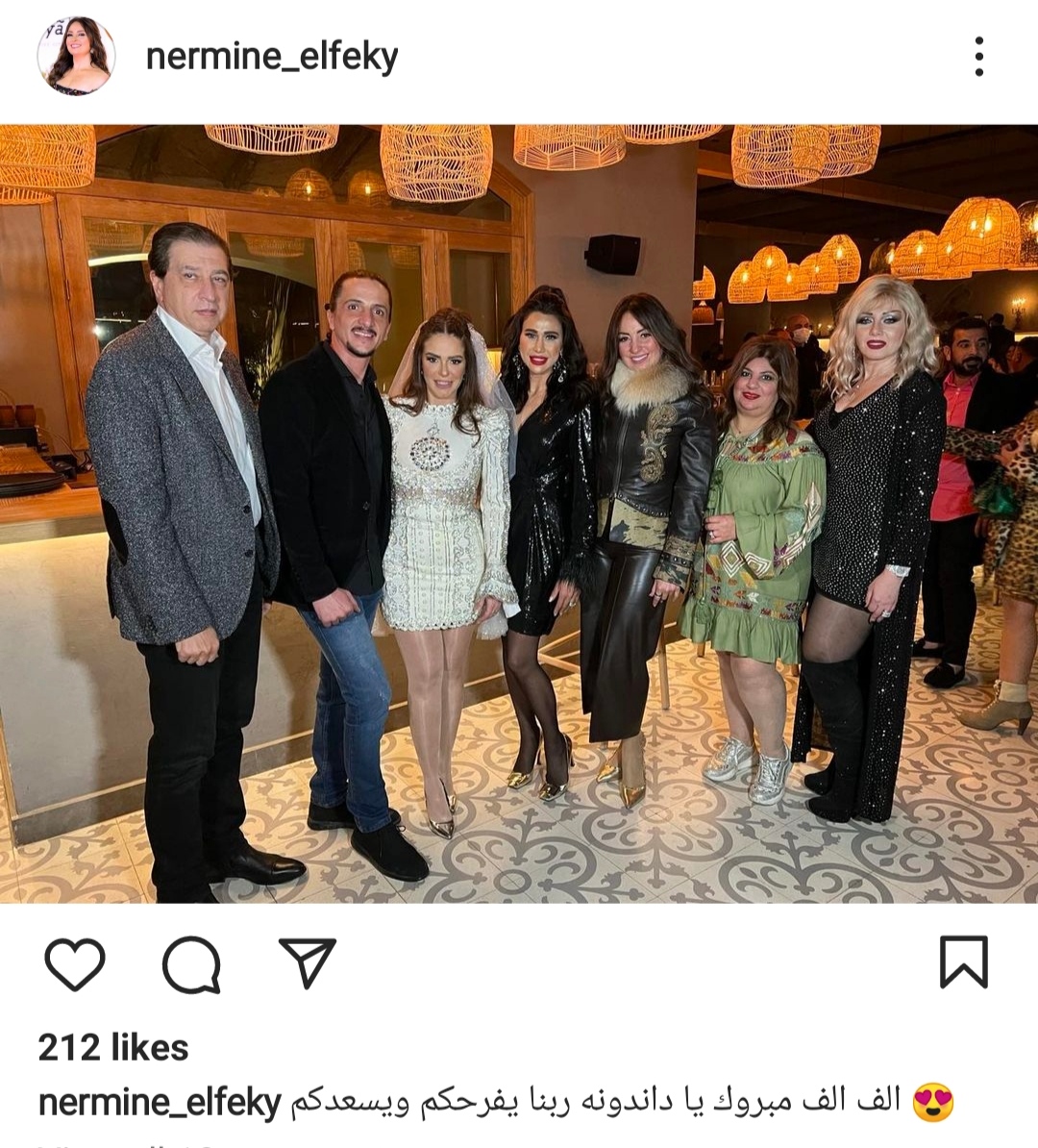 شاركت الفنانة نرمين الفقي، جمهورها بصورة جديدة من حفل زفاف دنيا عبد العزيز ، ونشرت صور جديدة من خلال صفحتها الشخصية بموقع التواصل الإجتماعي إنستجرام.
