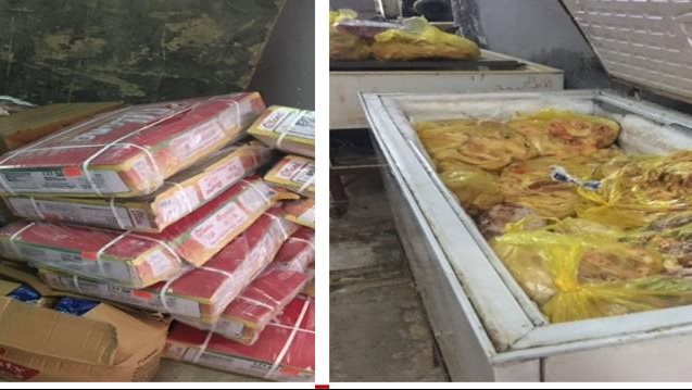 وتبين من الفحص تجميع و تخزين كمية كبيرة من اللحوم بدون بيانات تفيد تاريخ الإنتاج ومدة الصلاحية ومجهولة المصدر وغير مصحوبة بأية مستندات دالة على مصدرها غاشاً بذلك جمهور المستهلكين لتحقيق أرباح غير مشروعة.