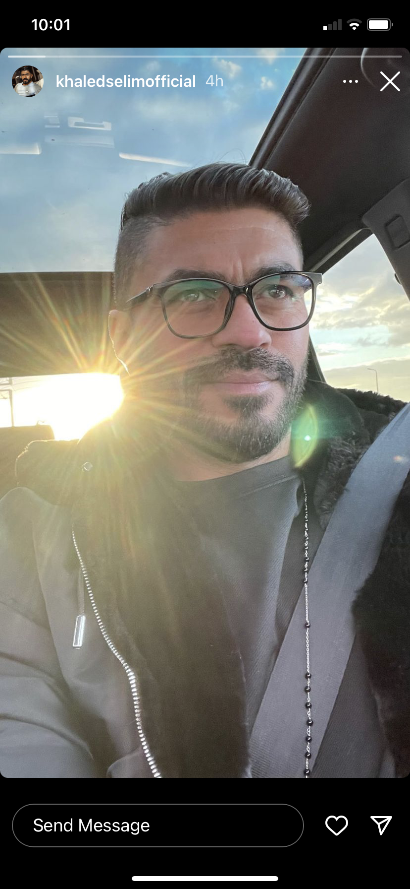 وظهر خالد سليم ، في الصورة من سيارته مما أثار إعجاب متابعيه .