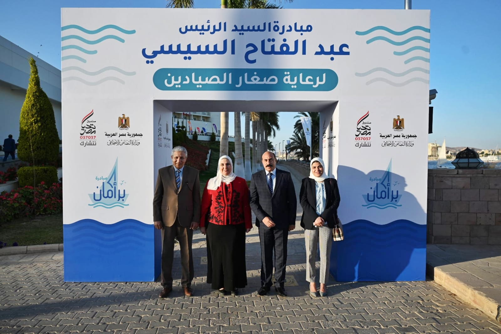 وسط الأنغام والأغانى الفولكلورية والتراثية لفرقة أسوان الدولية للفنون الشعبية شهدت وزيرة التضامن الإجتماعى الدكتورة نيفين القباج ، واللواء أشرف عطية محافظ أسوان إطلاق المرحلة الرابعة من مبادرة الرئيس عبد الفتاح السيسى " بر آمان " لدعم وحماية صغار الصيادين بإجمالى 42 ألف صياد موزعين في 9 بحيرات على مستوى الجمهورية.
