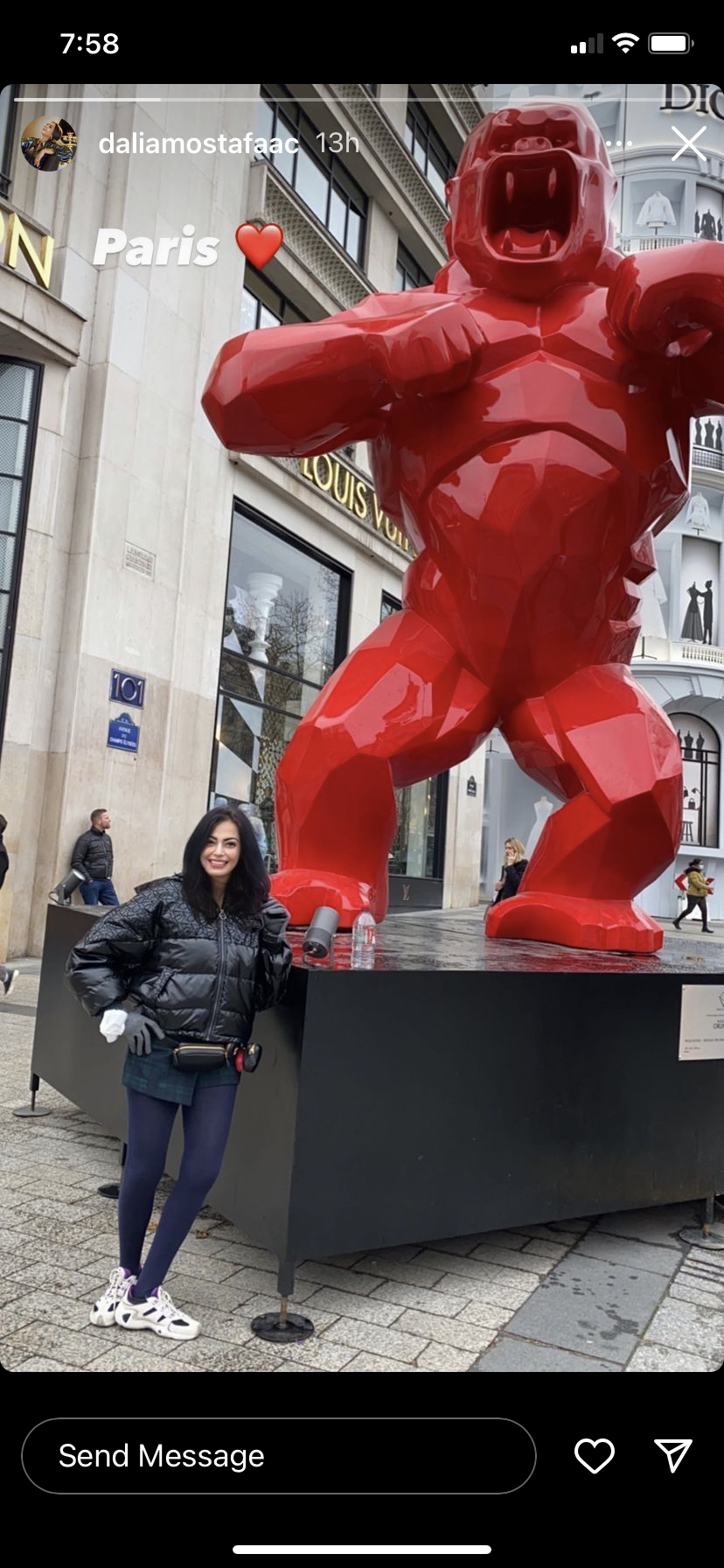وظهرتداليا مصطفىفي الصورة من شوارع باريس باطلالة شتوية باللون الأسود، واعتمدت ماكياج ناعم أبرز ملامحها، نالت اعجاب متابعيها.
