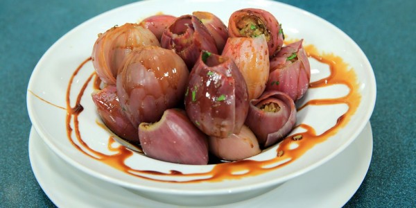 - نقوم بتوزيع الفول بالخلطة السرية على أطباق التقديم، ونقوم بتزيين الفول بالخلطة السرية الكمية المتبقية بـ البصل، الطماطم والبقدونس.