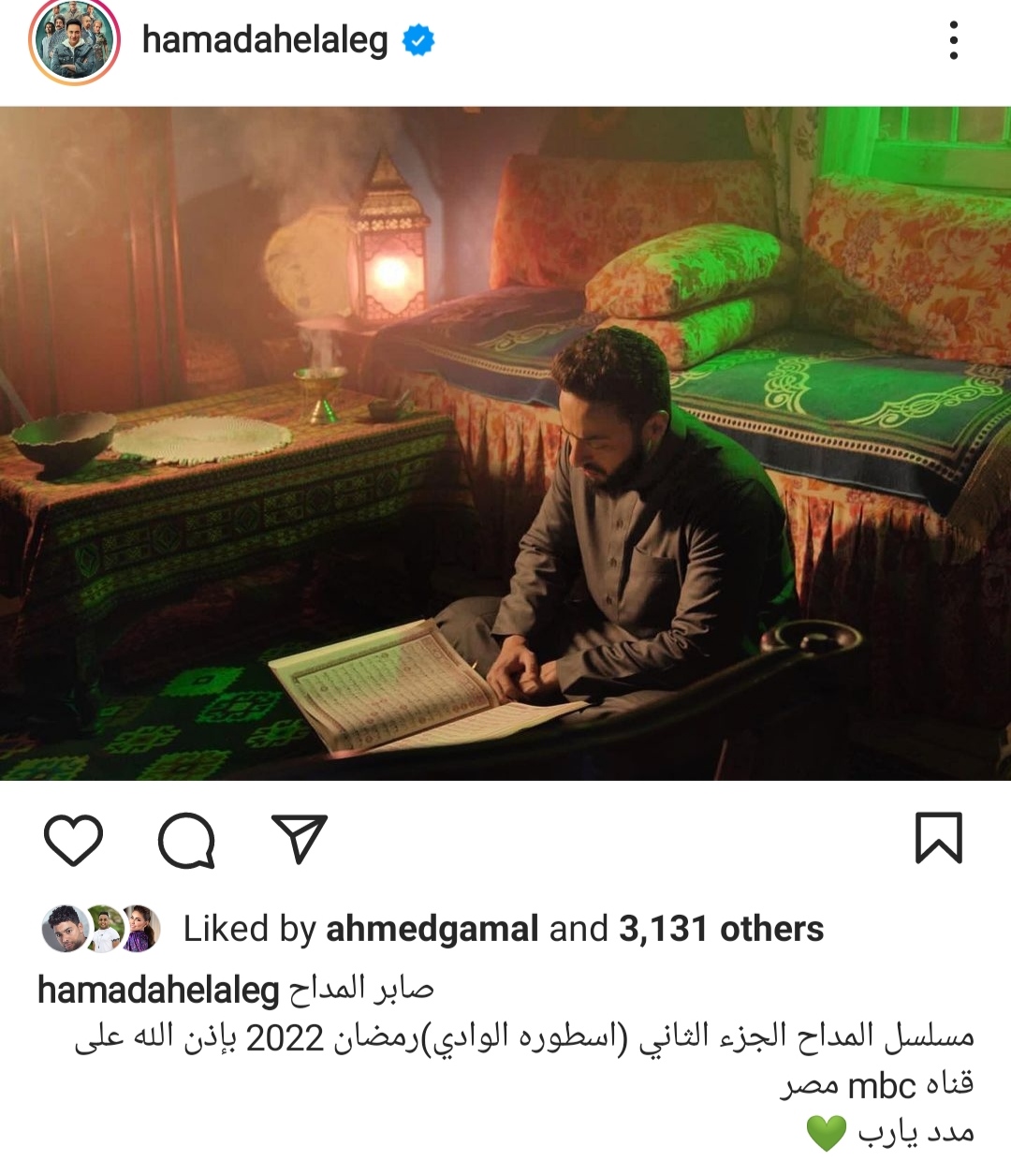 شارك الفنان،حمادة هلال،جمهوره صورة جديدة من كواليس تصوير مسلسله الرمضاني (المداح2).