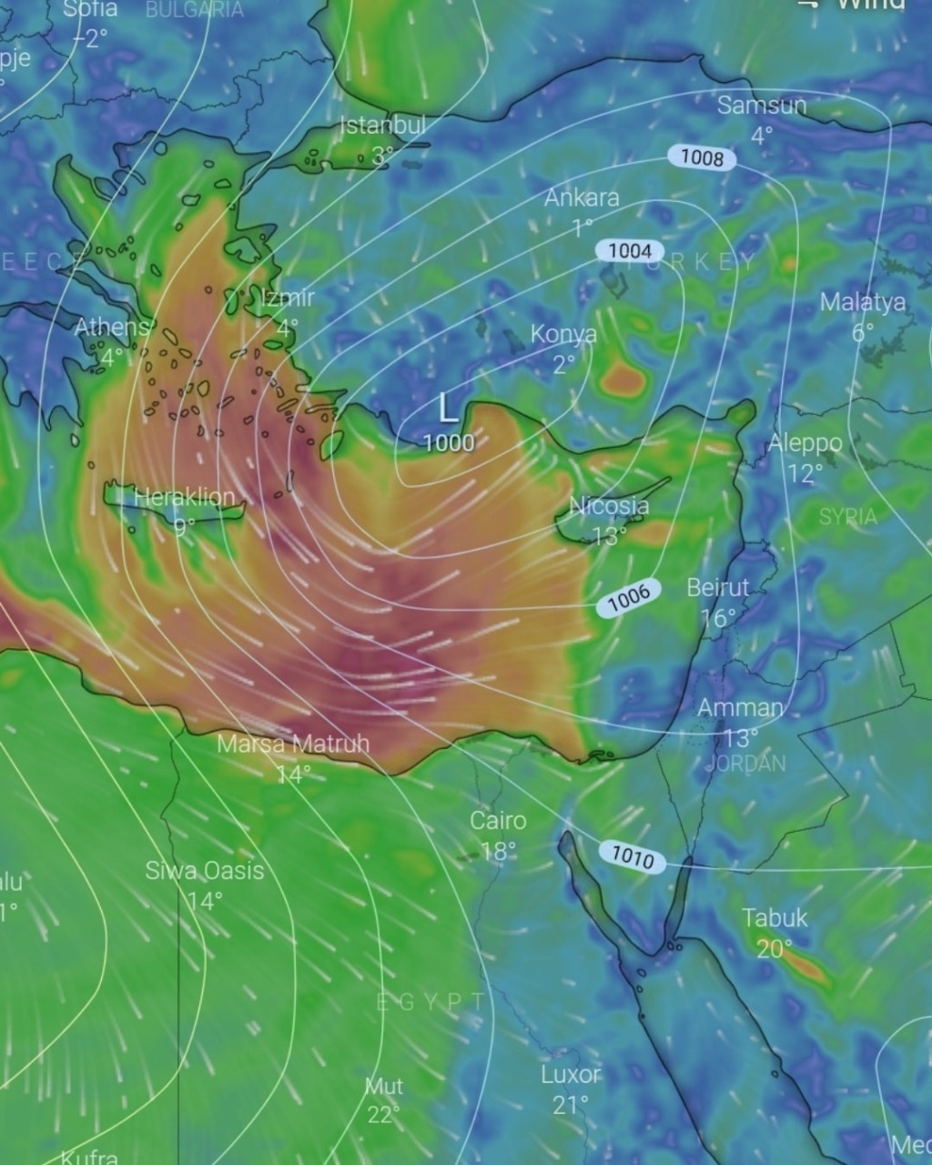 نشاط رياح على مناطق من القاهرة الكبرى والوجه البحري والسواحل الشمالية ومدن القناة ووسط سيناء وشمال الصعيد على فترات متقطعة.