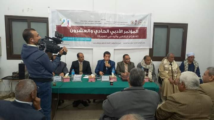 يواصل المؤتمر الأدبى لإقليم وسط الصعيد دورته الحادية والعشرون ، بمحافظة سوهاج ، خلال الفترة من ٢ إلى ٤ مارس ٢٠٢٢ تحت عنوان "الانفتاح الثقافى وأثره فى الهوية" برئاسة الشاعر سعد عبد الرحمن، وأمين عام المؤتمر الدكتور مصطفى رجب.
