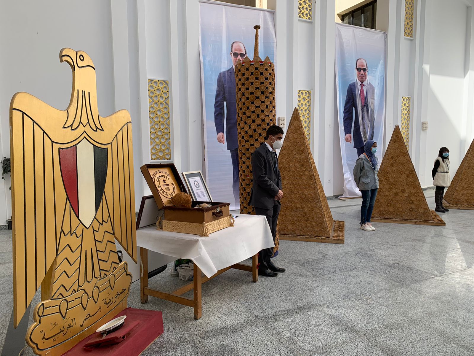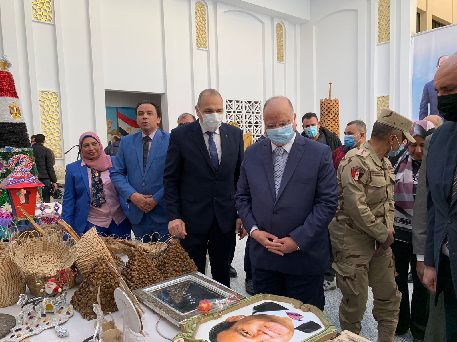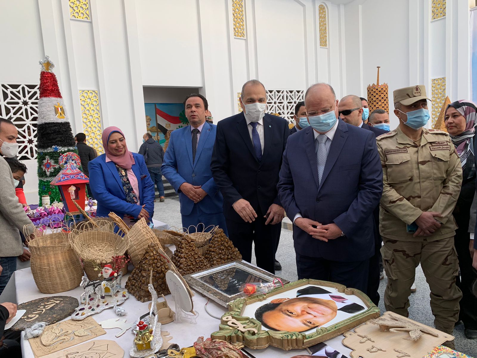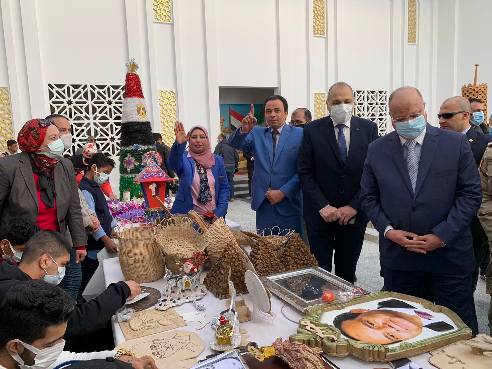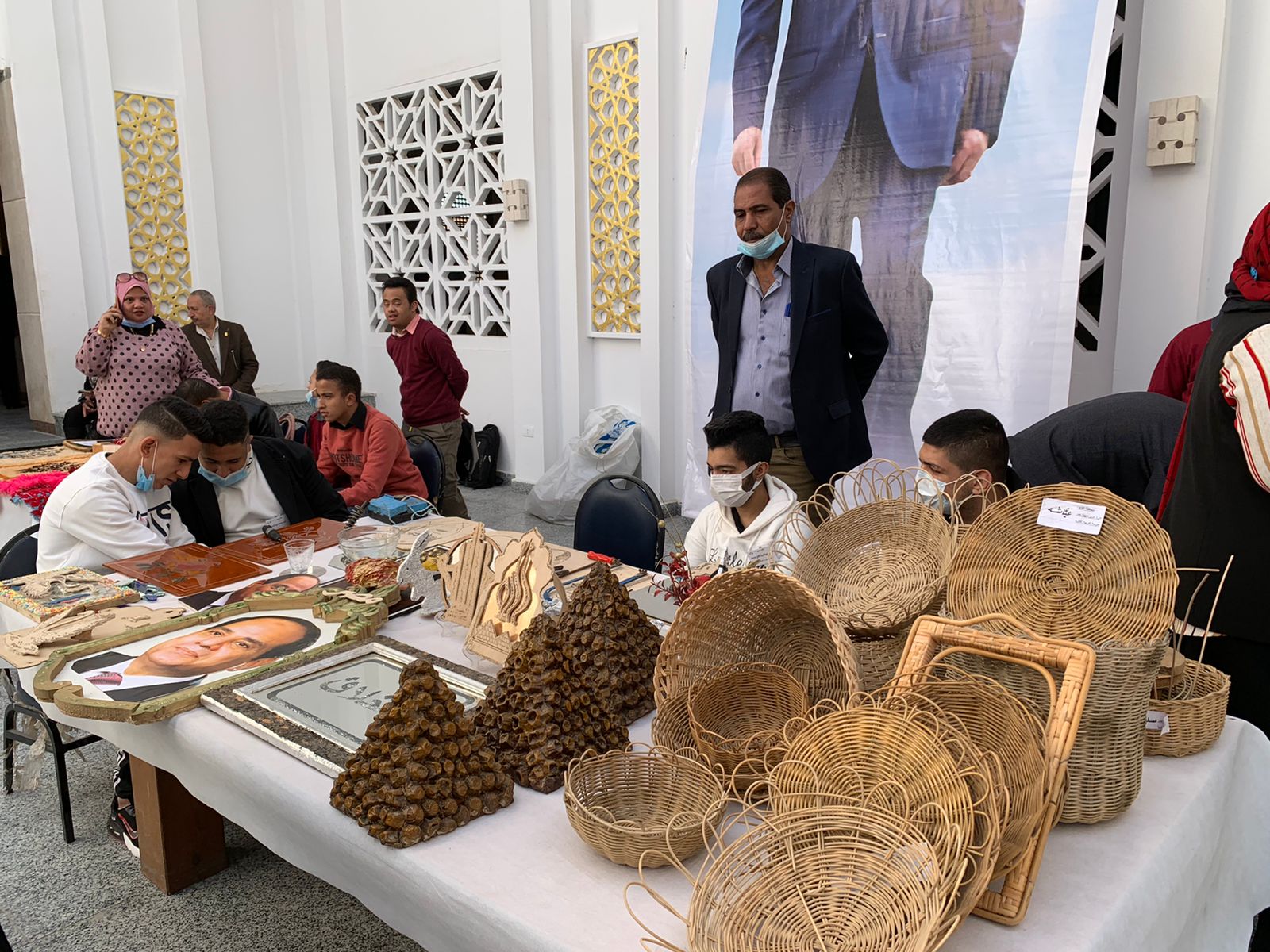 ويشمل المعرض المقام بمجمع الملك فهد في الحي السادس بمدينة نصر لوحات ومجسمات وأعمال فنية ويدوية علاوة على صور الرئيس عبد الفتاح السيسي.