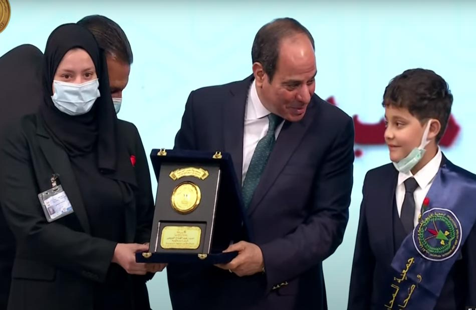 وكرم الرئيس السيسى الأب والأم المثاليين فى يوم الشهيد خلال احتفالية الندوة التثقيفية الخامسة والثلاثين للقوات المسلحة بمناسبة يوم الشهيد.