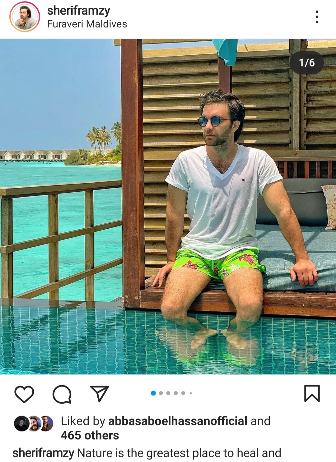 وظهر شريف رمزي في الصور من رحلته في المالديف، بإطلالة صيفية مما نال اعجاب متابعيه.
