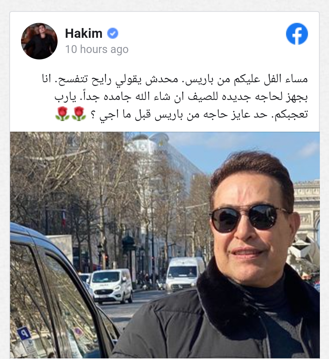 أعلن المطرب حكيم ؛ عبر صفحته على موقع التواصل الاجتماعي فيس بوك عن تحضيره لأغنية جديدة في الصيف .