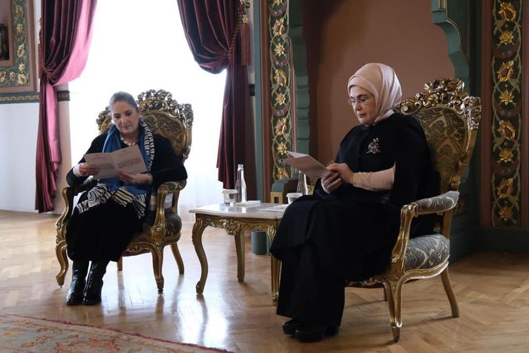 فعلى هامش الزيارة التي بدأها الرئيس الإسرائيلي إسحاق هرتسوج، إلى تركيا، أمس الأربعاء، هي الأولى لرئيس إسرائيلي منذ 2007، استضافت عقيلة الرئيس التركي أمينة أردوغان، زوجة الضيف.