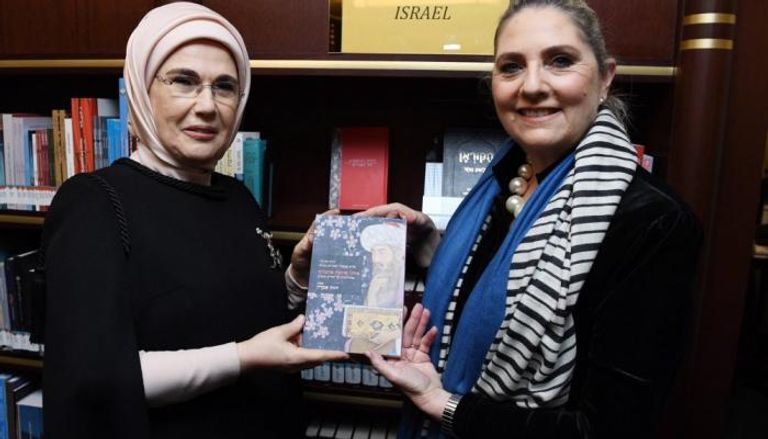 أما زوجة الرئيس التركي فقدمت لضيفتها أشعارا للشاعر التركي الراحل ليونس إمرة، مترجمة للعبرية.