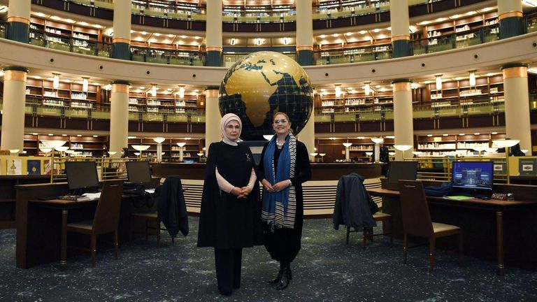 وزارت عقيلة الرئيس الإسرائيلي ميشال هرتسوج المكتبة الرئاسية في تركيا بصحبة أمينة أردوغان.