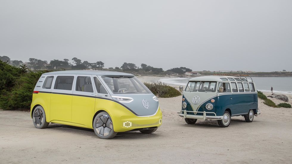 ظهرت لأول مرة مفهوم ID. معرض ديترويت للسيارات دورة 2017 ، وكانت Buzz أكبر مفهوم للشاحنات الـ MPV قدمته فولكس فاجن حيث يبلغ طوله 194.6 بوصة وعرضه 77.8 بوصة مع وجود صف ثالث للمقاعد، يتسع لـ 8 أفراج، ومرة أخرى يمكن أن تتحول المقاعد الأمامية لمواجهة الصف الثاني. عاد الطلاء ذو اللونين أيضًا، هذه المرة مزيج بين اللون الأصفر والأبيض، وتم تلطيف الزوايا لتكون أكثر استدارة مع التخلي عن الشكل الصندوقي المقدم في كلا من Bulli و BUDD-e. مع وجود إضاءة ليد LED دقيقة وخطوط ثلاثية في العمود الخلفي الخلفي مثل مفهوم ميكروباص.