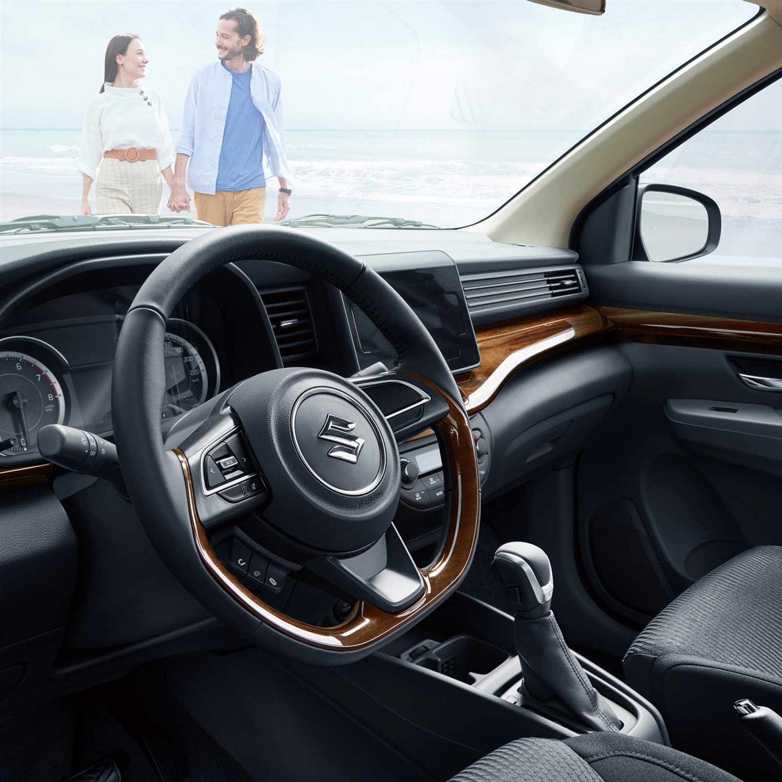 وتتوسط قمرة القيادة للسيارة سوزوكي ارتيجا موديل 2022 شاشة ملونة تعمل باللمس يبلغ قياسها 7 بوصة تدعم التطبيقات الحديثة، بالاضافة إلى مقود حركة متعدد الوظائف، ونظام صوتي مكون من 4 مكبرات صوتية، وزجاج كهربائي، مع مرايات كهربائية التحك قابلة للطي.