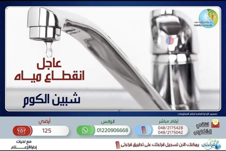 أرجعت الشركة سبب الانقطاع نظرا لأعمال تحويل المرافق للصرف الصحي بشارع بطل السلام بميدان الحواتم بمدينة الفيوم لخط مياه قطر 450 زهر.