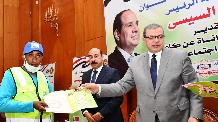هذا وإستمراراً للتعاون المتواصل بين وزارة القوى العاملة ومحافظة أسوان لتنفيذ مبادرة الرئيس عبد الفتاح السيسى ( حياة كريمة ) لرعاية الفئات المختلفة من أبناء المجتمع الأسوانى ولاسيما العمالة غير المنتظمة .