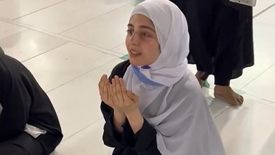 دعاء و بكاء وأجواء روحانية عاشتها الفنانة الشابة مايان السيد، فيبدو أنها المرة الأولى التي تزور فيها الكعبة، وتأثرت كثيراً بالمشهد وحرصت على التقاط صور لها من أمام الكعبة الشريفة .