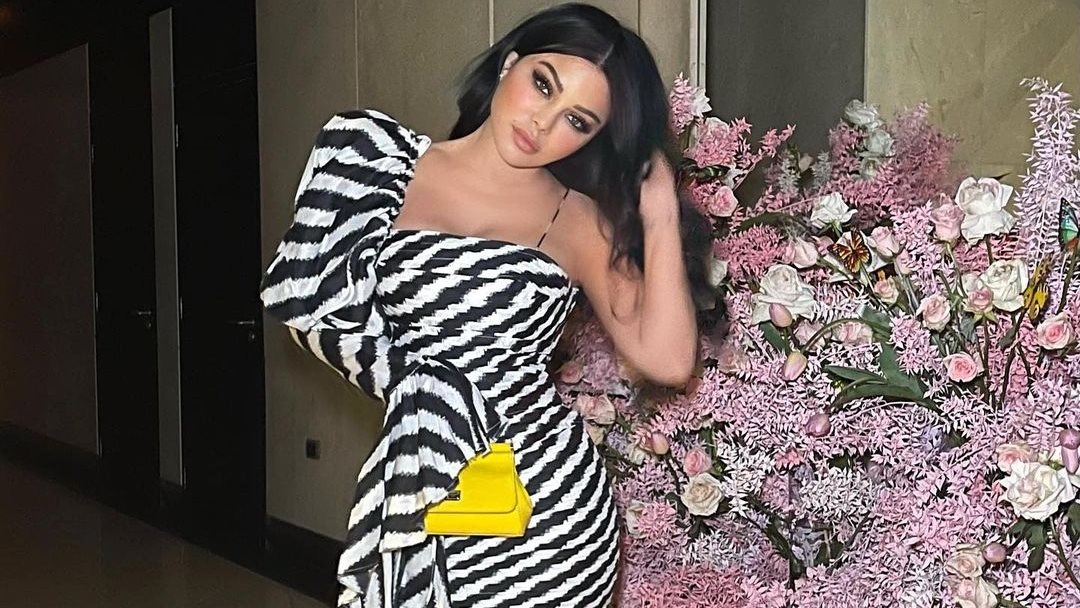 ولمتتكلف جويل مردينيان في ارتداء الإكسسوارات، حيث إنها اختارت قرطين ناعمين وكولية كبير باللون الذهبي الامع، وهو ما أبرز من رقة وجمال إطلالتها.
