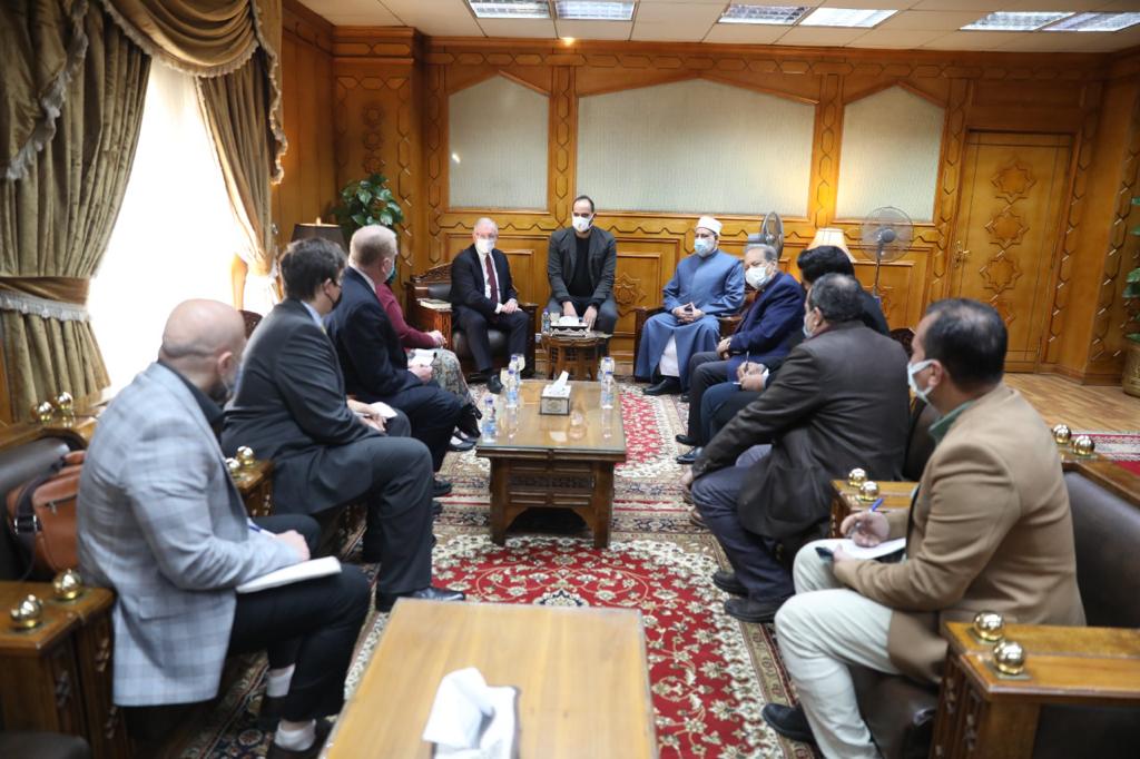 في بداية اللقاء رحب وكيل الأزهر بالسيد فانك والوفد المرافق له في مشيخة الأزهر، ناقلا لهم تحيات فضيلة الإمام الأكبر أ.د أحمد الطيب شيخ الأزهر، مؤكدا حرص فضيلته على تعزيز أوجه التعاون مع كافة الطوائف والمؤسسات الدينية الإقليمية والدولية، من أجل إعلاء قيم المواطنة والإنسانية وترسيخ سبل السلام والتسامح والمحبة، من خلال تنشيط أوجه الحوار بين أتباع الأديان لنشر قيم السلام، ونبذ أشكال العنف والكراهية.