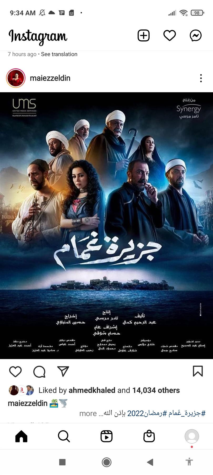 يذكر أن نشر المنتج تامر مرسي المالك لشركة "سينرجي"، بوستر دعائيًّا لمسلسل "جزيرة غمام″، بطولة الفنان طارق لطفى ومى عز الدين، الذي من المقرر عرضه في رمضان 2022.