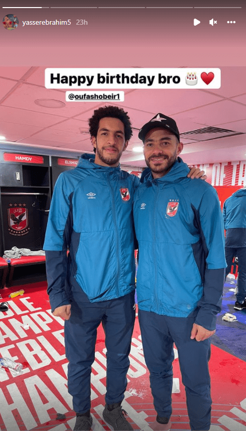 ونشر ياسر إبراهيم صورة له رفقة مصطفى شوبير عبر انستجرام وعلق قائلًا :"عيد ميلاد سعيد اخى ".