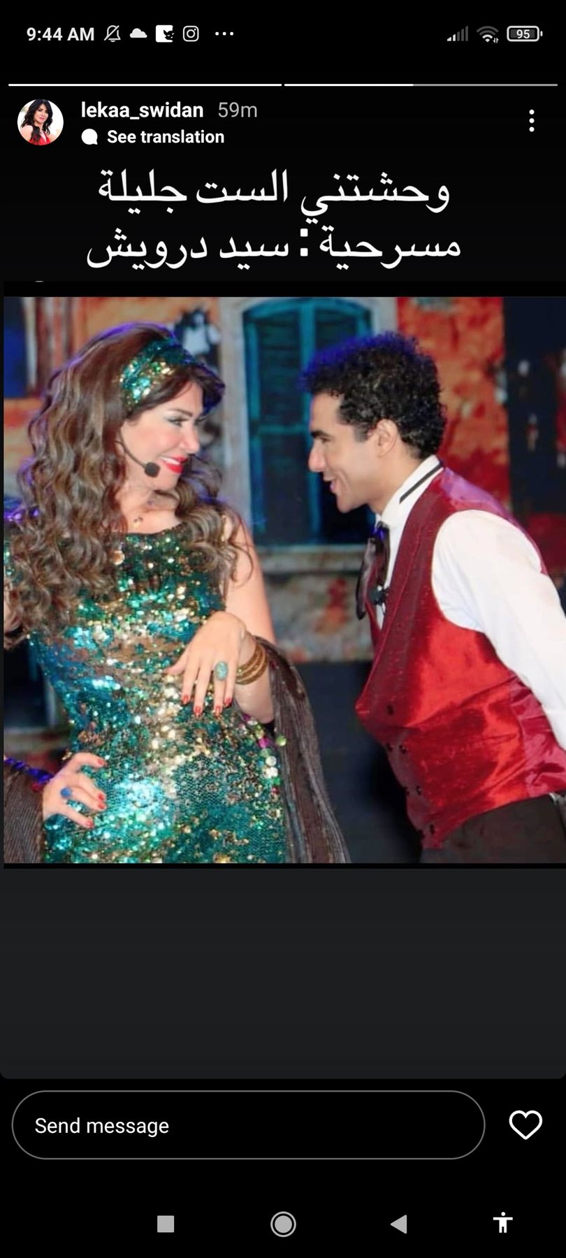 وظهرت في الصورة من كواليس تصوير مسرحية “سيد درويش”، مما نال إعجاب متابعيها.