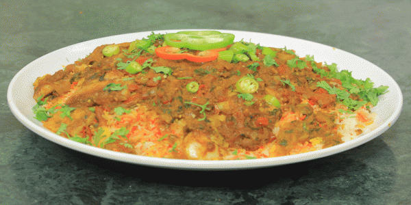* ضيفي رشة بودرة الزعفران واتركيه ليكتمل مع الارز واقلبيه في سرفيس التقديم وقدمي مطبق السمك ساخنا