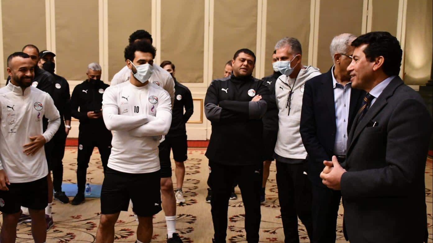 التقى الدكتور أشرف صبحى وزير الشباب والرياضة ،اليوم ، لاعبى المنتخب الوطنى الأول لكرة القدم والجهاز الفنى بقيادة كارلوس كيروش في حضور جمال علام رئيس اتحاد الكرة، واللواء حلمى مشهور عضو مجلس إدارة الاتحاد، وذلك قبل سفر بعثة المنتخب الوطنى إلى العاصمة السنغالية "داكار"؛ لخوض مباراة العودة أمام المنتخب السنغالى المقرر لها الثلاثاء المقبل ضمن التصفيات الإفريقية النهائية المؤهلة إلى كأس العالم بقطر ٢٠٢٢