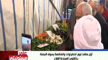 وعرض الإعلامي أحمد موسى تقريرا عن افتتاح أول منفذ لبيع الخضروات والفاكهة تجزئة بسعر الجملة .