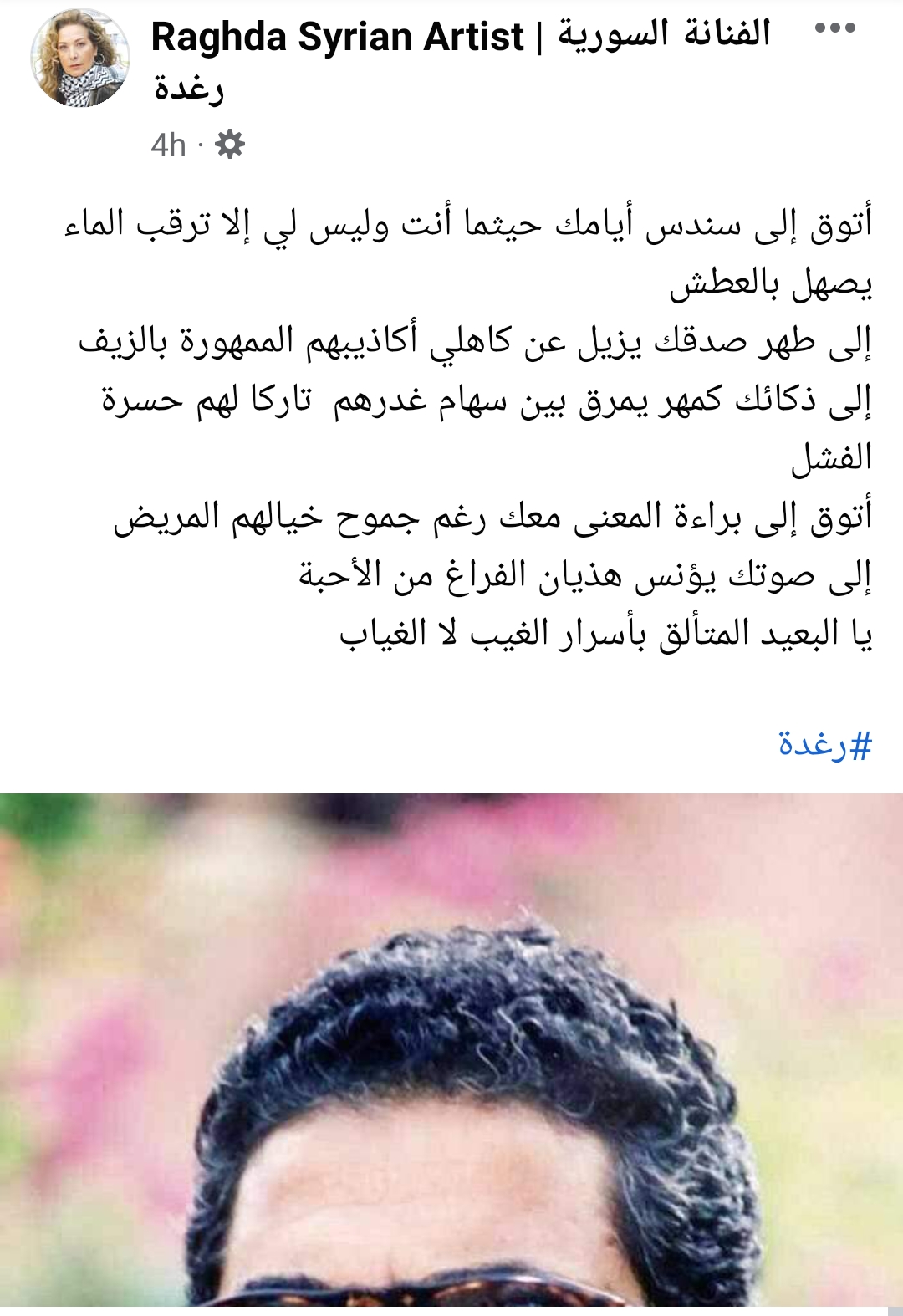 وكتبت رغدة :" أتوق إلى سندس أيامك حيثما أنت وليس لي إلا ترقب الماء يصهل بالعطش إلى طهر صدقك يزيل عن كاهلي أكاذيبهم الممهورة بالزيف".