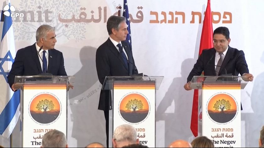 اختتمت اليوم القمة الدبلوماسية العربية الإسرائيلية الأمريكية في مدينة النقب الإسرائيلية، حيث عقد كل من وزراء خارجية الدول العربية "مصر والإمارات والبحرين والمغرب" بجانب وزير خارجية دولة الاحتلال الإسرائيلي ووزير الخارجية الأمريكي أنتوني بلينكن، مؤتمرا صحفيا عقب نهاية الاجتماعات.