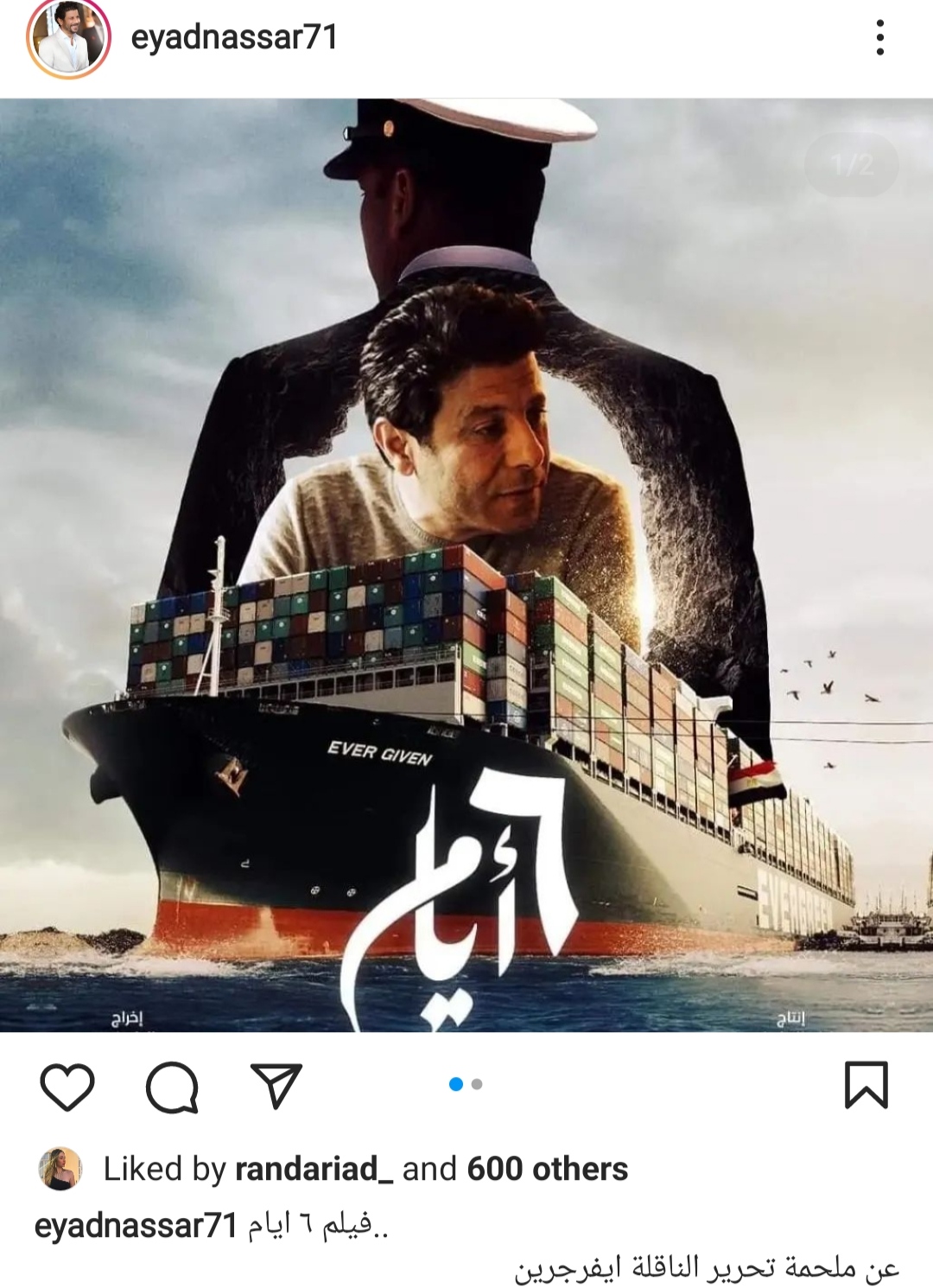 قال الفنان إياد نصار، إن فيلم "6 أيام" الذى يحكى قصة نجاح مصر في تعويم السفينة إيفر جيفن من قناة السويس مدته 21 دقيقة وهو توثيقي ومن أصعب الأنواع في التنفيذ لأنه بينقل حدث مهم بتفاصيل مختلفة.
