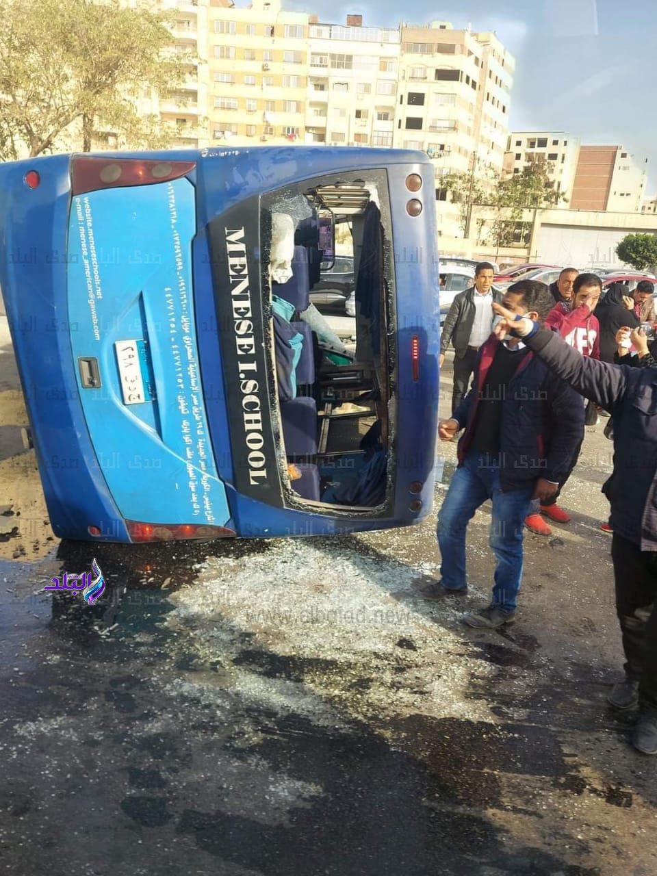 وكانت غرفة عمليات المرور في القاهرة، تلقت بلاغا أفاد بإنقلاب أتوبيس مدارس على محور جوزيف تيتو، وعلى الفور وجهت الأجهزة الأمنية في القاهرة، الخدمات المرورية وسيارات الإسعاف إلي موقع الحادث.
