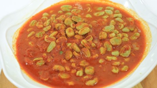 اضيفي ملعقة كبيرة من صلصة الطماطم مع التقليب حتى الغيان ثم اضيفي الفول والزيت وقدمي مع خبز التورتيلا