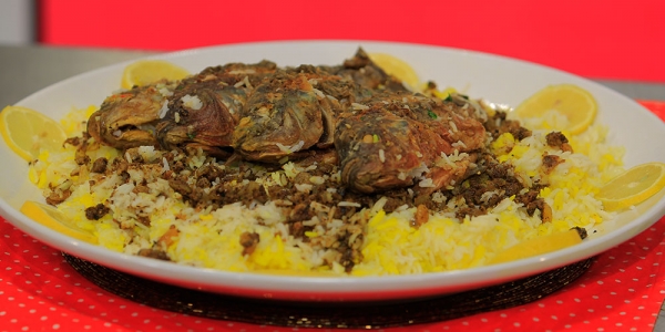 1-في الكبة يوضع السمك والثوم والبصل مع الزيت والروزماري والملح ويتم فرمهم جيدا.