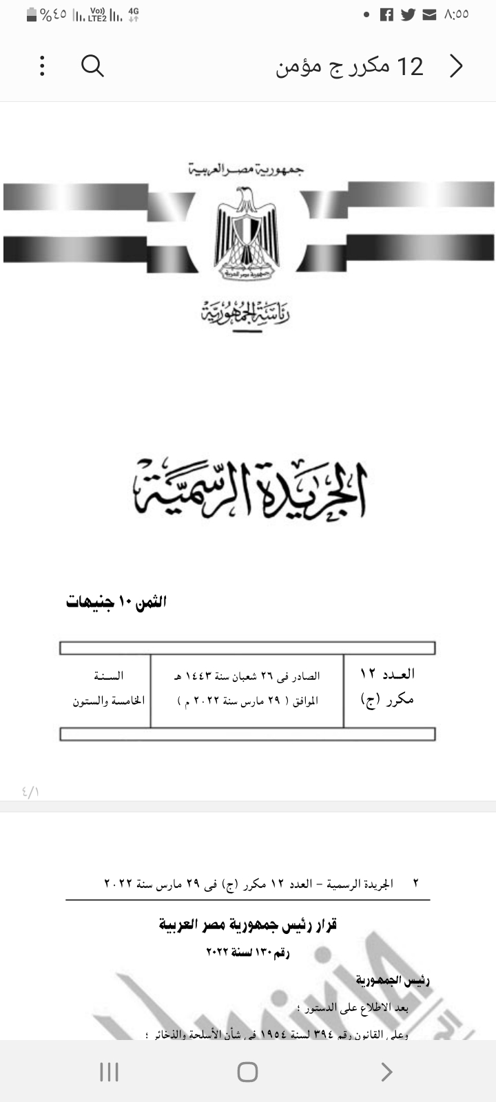 صدق الرئيس عبد الفتاح السيسى، على القرار 130 لسنة 2022 بمد العمل بأحكام قرار رئيس الجمهورية رقم 442 لسنة 2021 لمدة ستة أشهر أخري تبدأ من يوم الأحد الموافق الثالث من أبريل 2022.