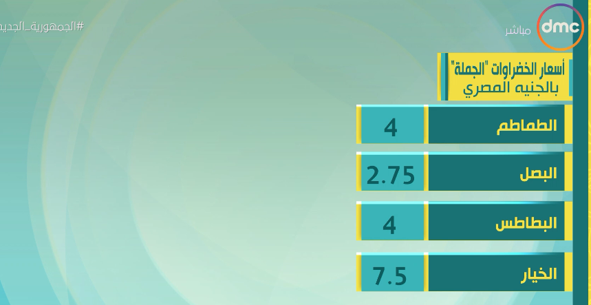 استعرض برنامج "8 الصبح" على قناة "دي إم سي"، أسعار الخضراوات والفاكهة، اليوم الجمعة 1- 4- 2022، حيث شهدت انخفاضا.