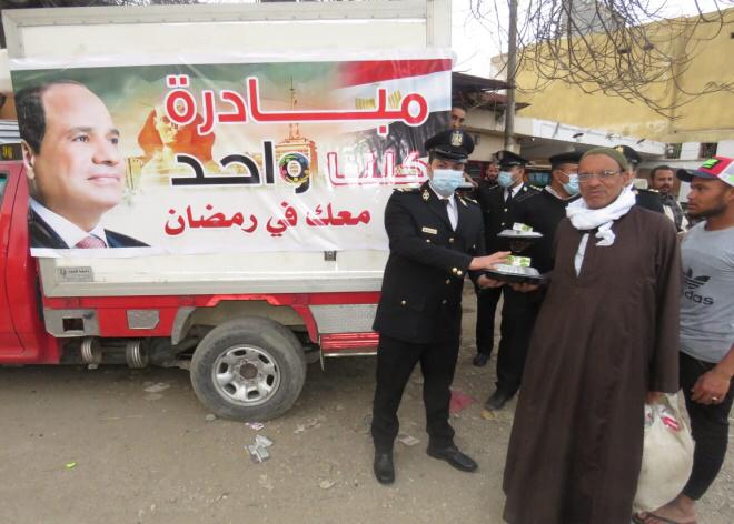 قامت وزارة الداخلية بتنظيم مبادرة (كلنا واحد – معك فى رمضان) فى إطار المبادرة الرئاسية (حياة كريمة) ، وبالإشتراك مع بنك الطعام المصرى من خلال تجهيز عدد من وجبات الإفطار وتوزيعها من خلال سيارات مجهزة قبل وقت الإفطار مباشرةً على المواطنين ممن تتطلب طبيعة عملهم التواجد خلال توقيت الإفطار ، وكذا العمالة غير المنتظمة بعدة مناطق بنطاق محافظتى (القاهرة – الجيزة) .. حيث تم إيفاد عدد من ضباط قطاع حقوق الإنسان بالوزارة بالإشتراك مع مديريتى أمن (الجيزة - القاهرة) للمشاركة فى إنطلاق فعاليات المبادرة.