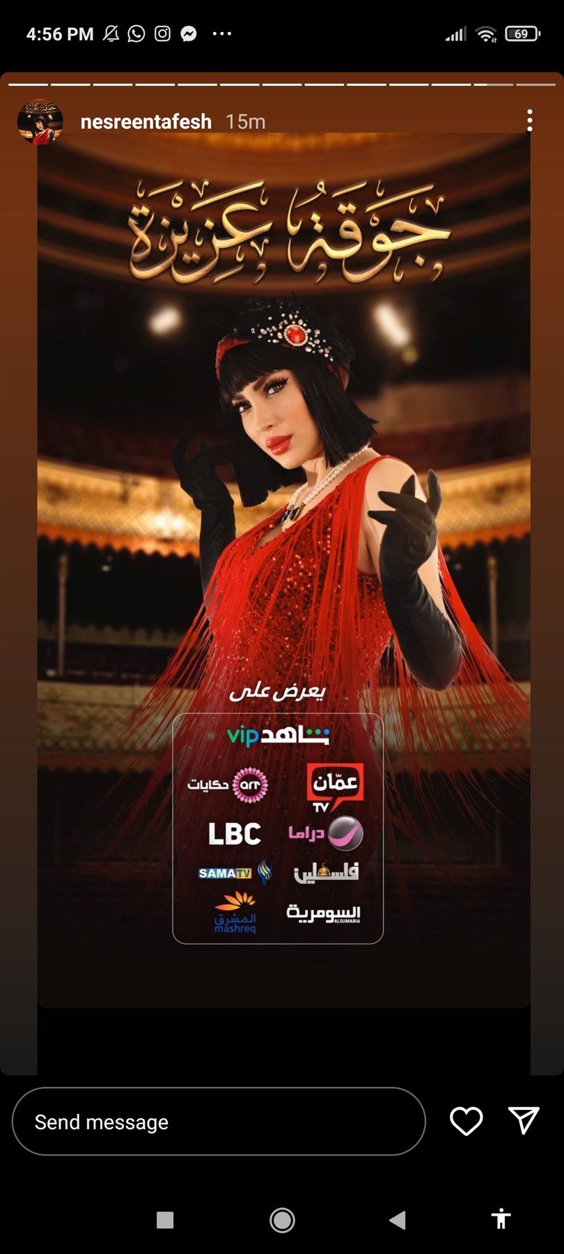 وظهرت نسرين طافش ، من البوستر الرسمي لمسلسل “جوقة عزيز”، ما نال اعجاب متابعيها.
