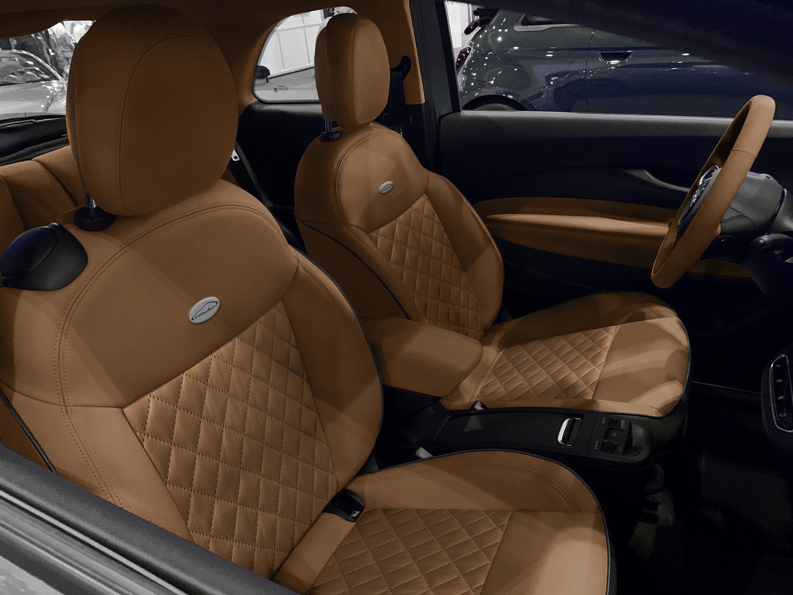 وتضم السيارة فيات 500 ترقيات داخلية بلمسات ايرميشرحيث دعمت بمقاعد من الجلد الفاخر باللون الأحمر الداكن بالإضافة إلى البني "أماريتو" بإطلالة عالية الفخامة ذات حياكة مميزة بارزة وغائرة، مع فرش داخلي خاص بالأبواب يحمل تلك اللمسات مع مقود حركة بنفس اللون، إلى جانب منطقة السقف من الداخل التي ظهرت بهذه الألوان أيضا.