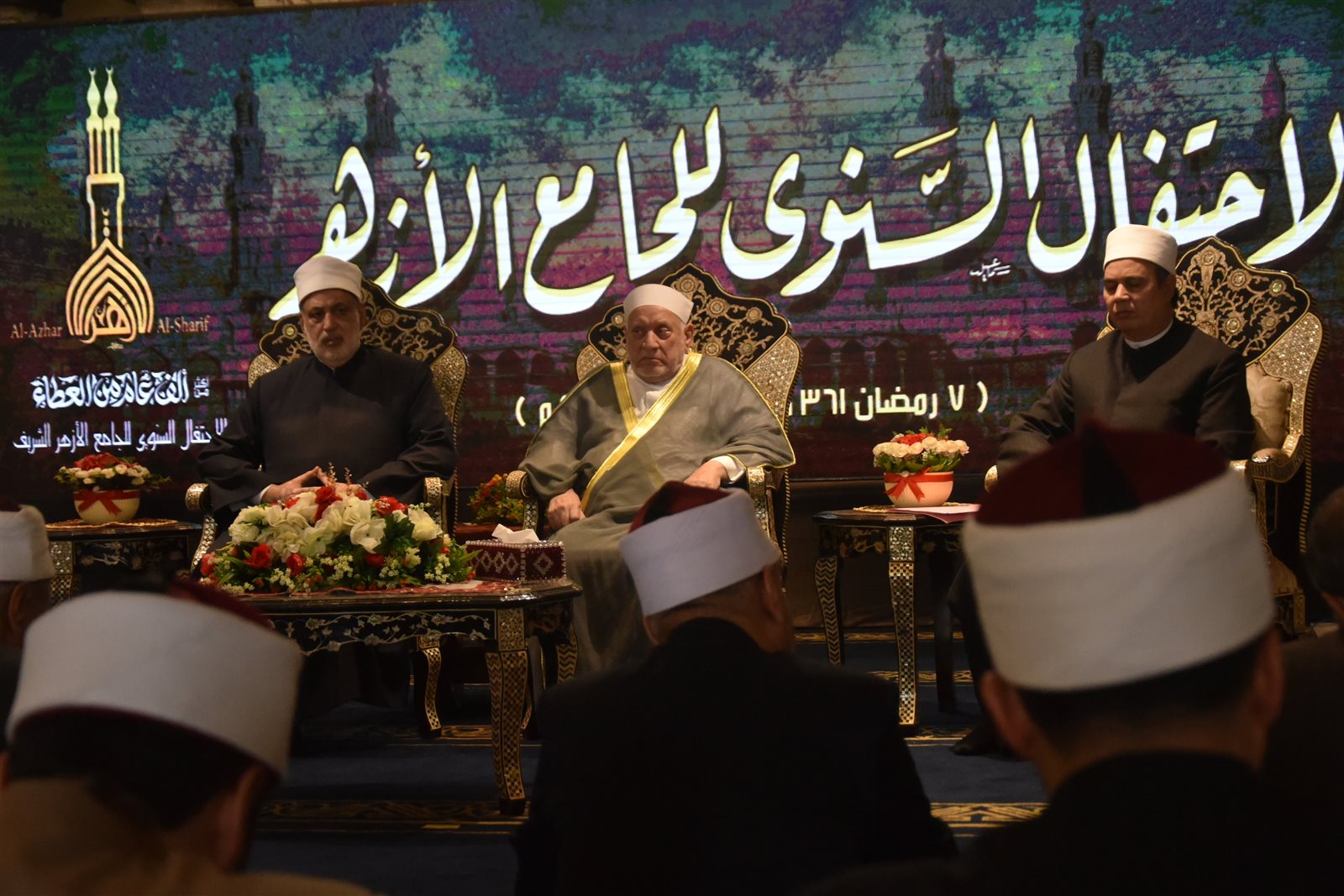 وأضاف وكيل الأزهر أن هذا الاحتفال مناسبة طيبة كذلك للحديث عن الأزهر باعتباره مؤسسة متحركة، أصولها في التاريخ راسخة، وعيونها إلى المستقبل متطلعة، وإذا كان تاريخ الأزهر الشريف يستحق أن يسجل في كل أيامه الماضية فإن الحديث عن أزهر المستقبل واجب كذلك، كما أن ملامح التطوير والمعاصرة واضحة في جبين الأزهر بما يؤهله ليكون حاضرا بقوة في مستقبل الأمة بجهود علمائه الذين لا يخشون في الله لومة لائم، وفي مقدمتهم شخصية علمية رفيعة المستوى، واسعة الخبرة، عميقة الثقافة، منفتحة على العصر، وما فيه من حراك فكري؛ فالدكتور أحمد الطيب، شيخ الأزهر الشريف، من العلماء الفضلاء، ومن المفكرين المستنيرين، ومن العاملين المخلصين المتجردين من الغرض والهوى، فهو وسطي في أفكاره وآرائه، ووسطي في سلوكه وممارساته.