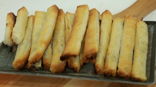 - نترك العجينة كي ترتاح 15 دقيقة، نفرد العجينة ونقصها بشكل دائري، من ثم نحدد الجزء العلوي بالسكين على شكل خطوط للزينة .