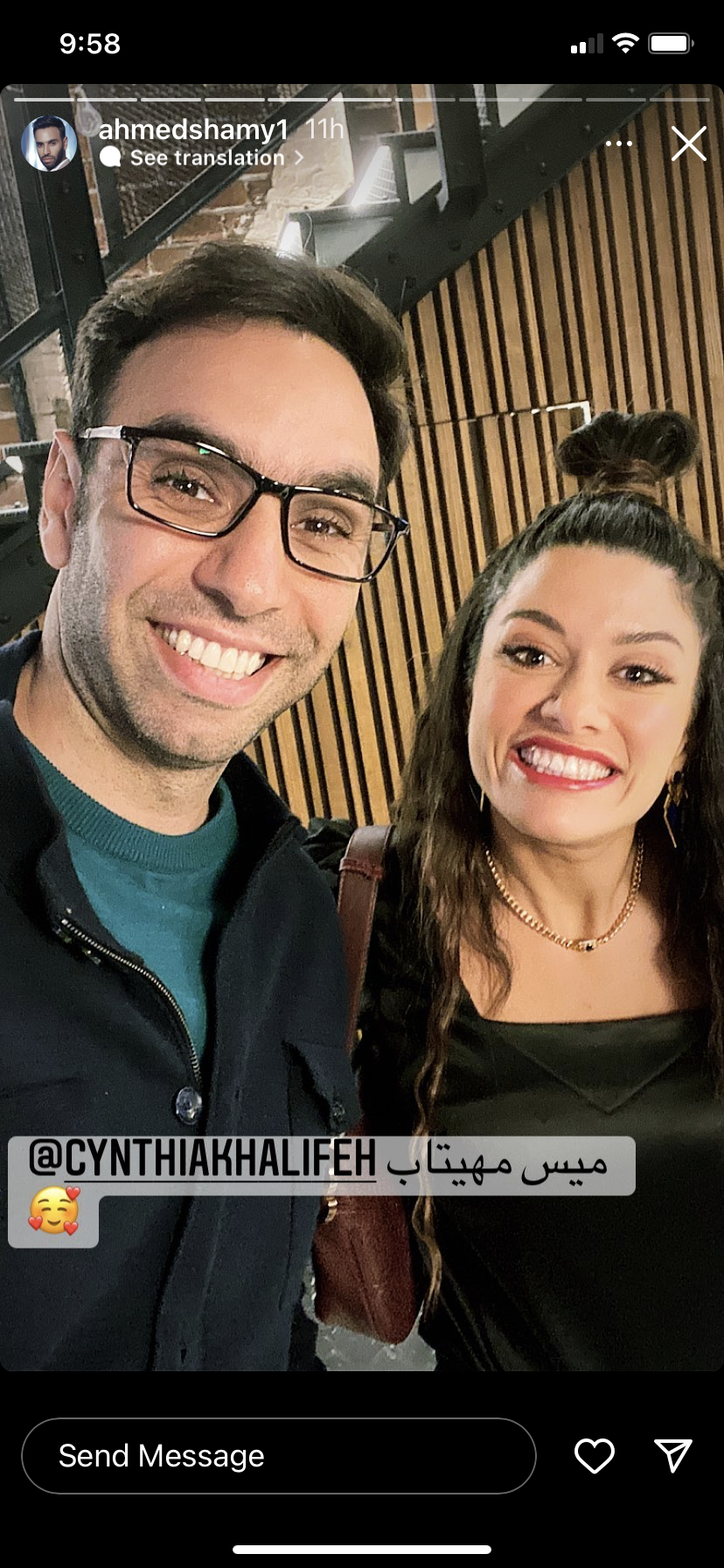 وظهر أحمد الشامي في الصورة مع سينتيا خليفة من كواليس مسلسل دايما عامر و علق قائلا:" ميس مهيتاب ".