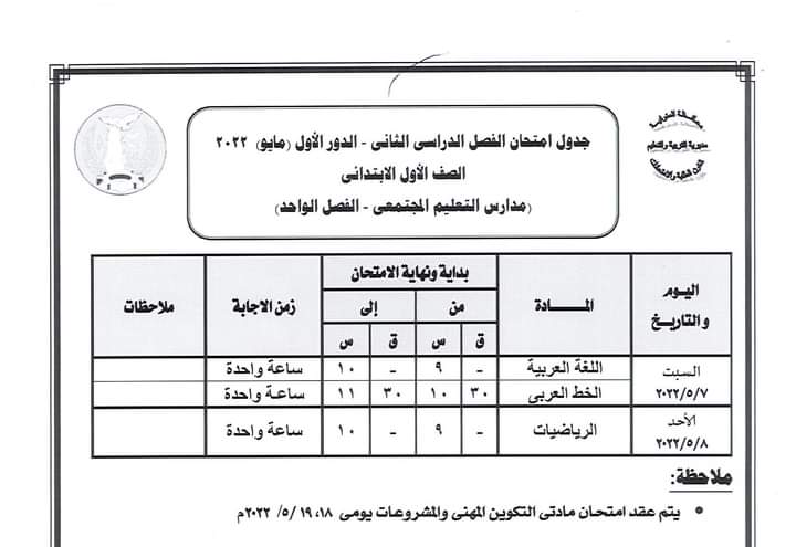 وبخصوص جدول سير امتحانات الدور الأول للصفين الأول والثاني الثانوي العام فستعلنه الوزارة .