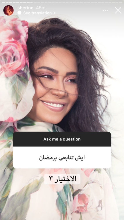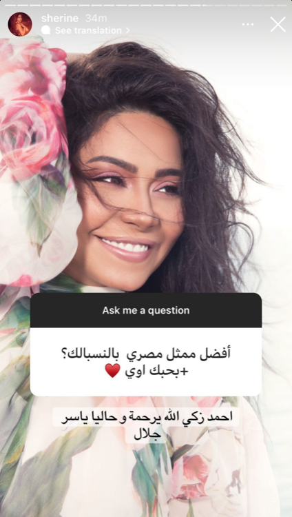 حرصت الفنانة شيرين عبد الوهاب علي الرد علي استفسارات و أسئلة جمهوها عبر حسابها بموقع التواصل الاجتماعي انستجرام، حيث قام أحد المتابعين بسؤالها "ايش تتابعي برمضان ،و أفضل ممثل مصري بالنسبالك.