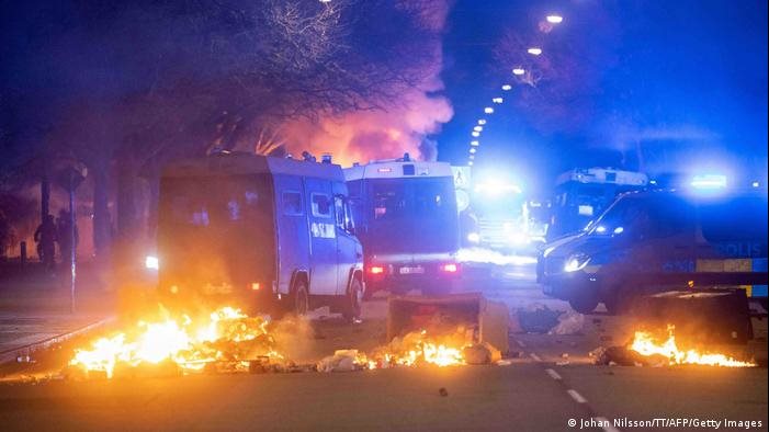وفي مدينة أوريبرو جنوبي البلاد، تم إضرام النار في عدة سيارات تابعة للشرطة يوم الجمعة العظيمة، وهو أحد أيام احتفالات عيد الفصح. واندلعت أعمال شغب أيضا شهدت أعمال رشق بالحجارة في العاصمة ستوكهولم. وأصيب نحو عشرة من رجال الشرطة بجروح.
